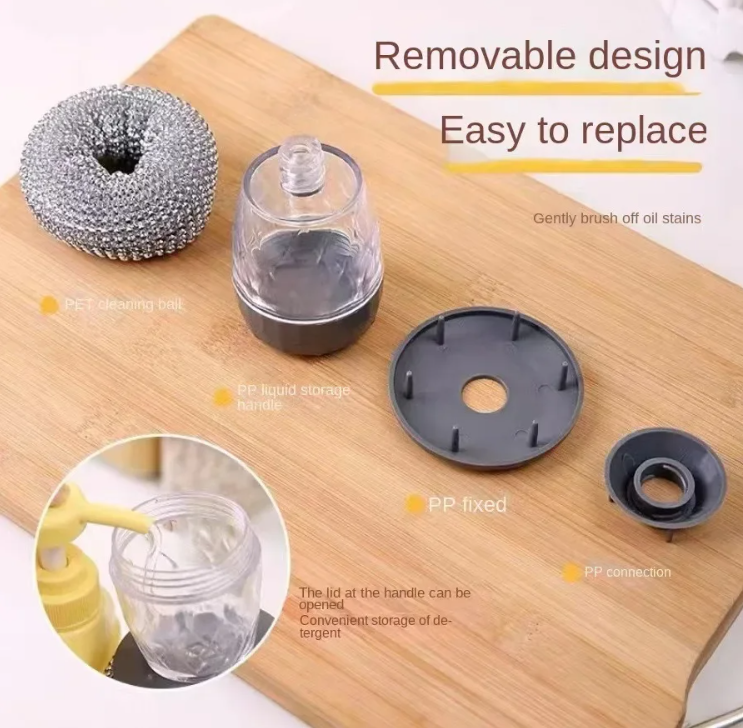 Soap Dispenser Steel Brush Automatic Liquid Adding Pot Washing Brush Stainless Steel Press Brush Kitchen Tool Household Cleaning Brush