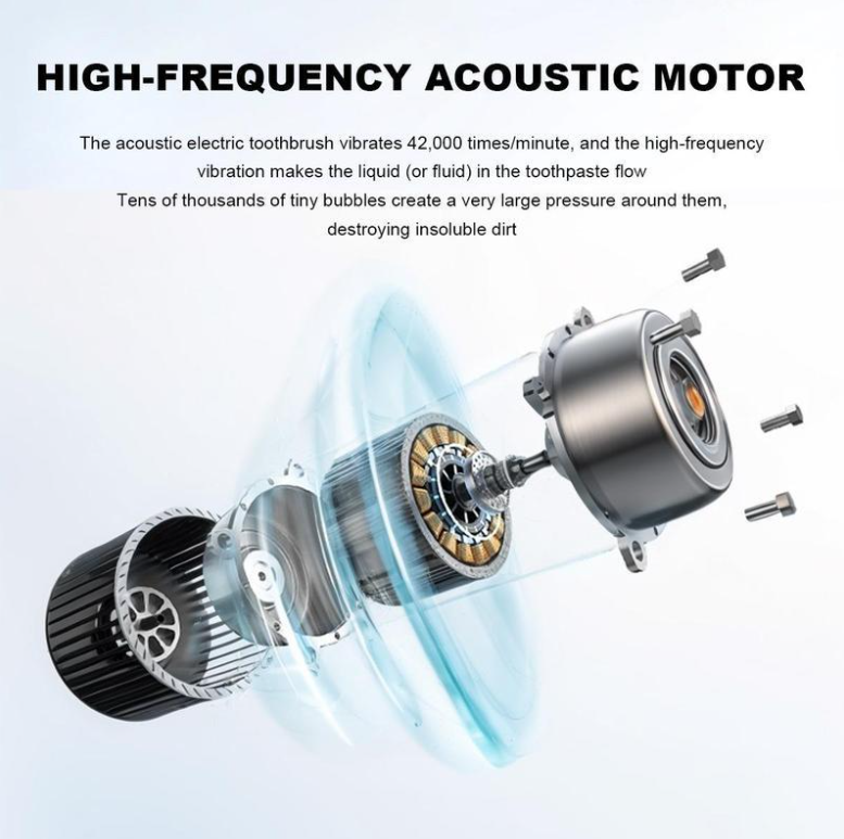 The electric toothbrush is equipped with a super-powered motor, which can generate 42,000 VPM/min.
